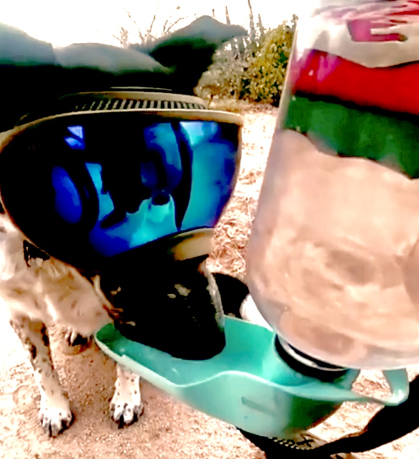 The drawbacks are that it’s bulkier than a collapsible reservoir and bowl and it does not stand erect on its own so you need to hold it while your dog drinks.